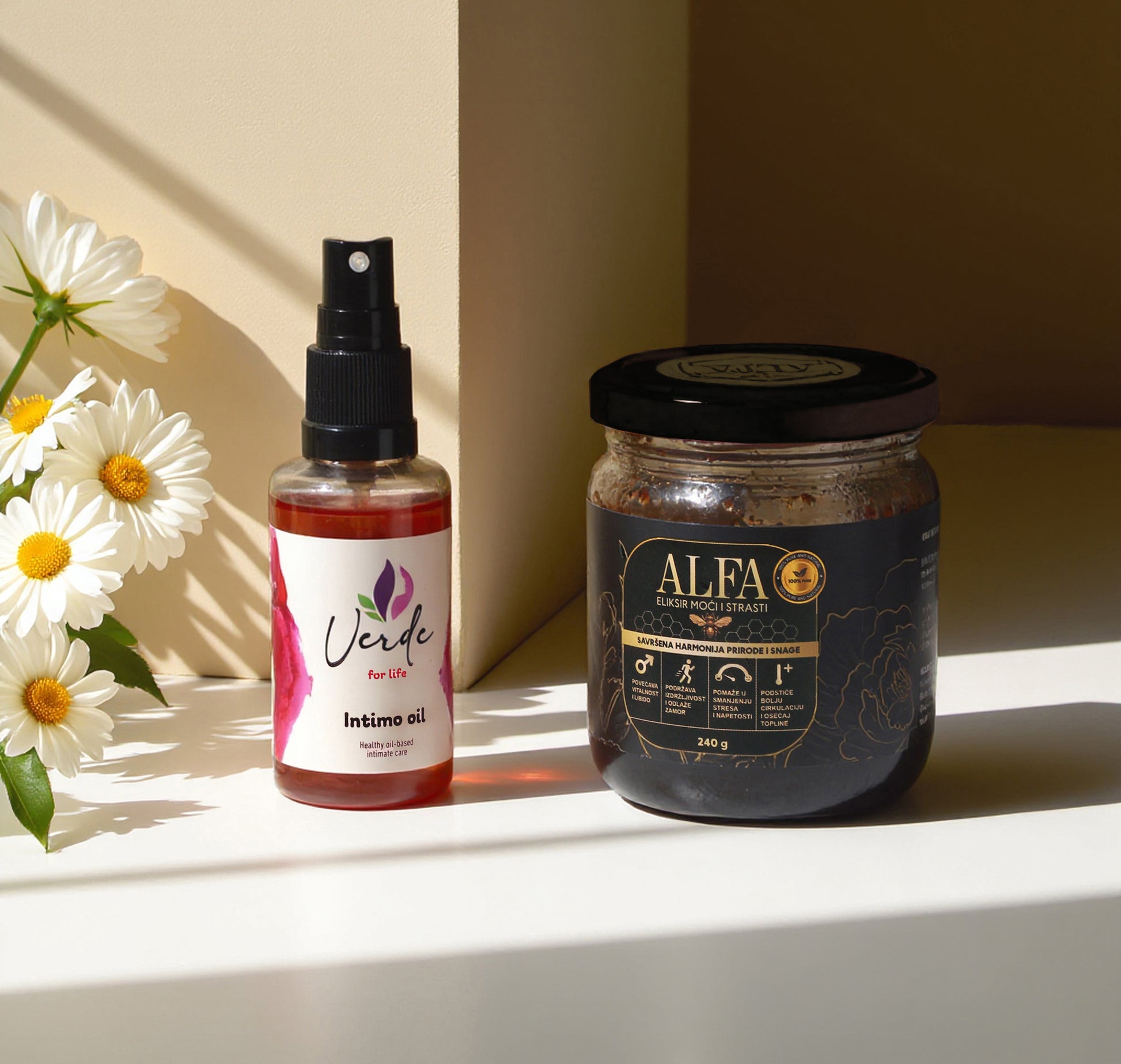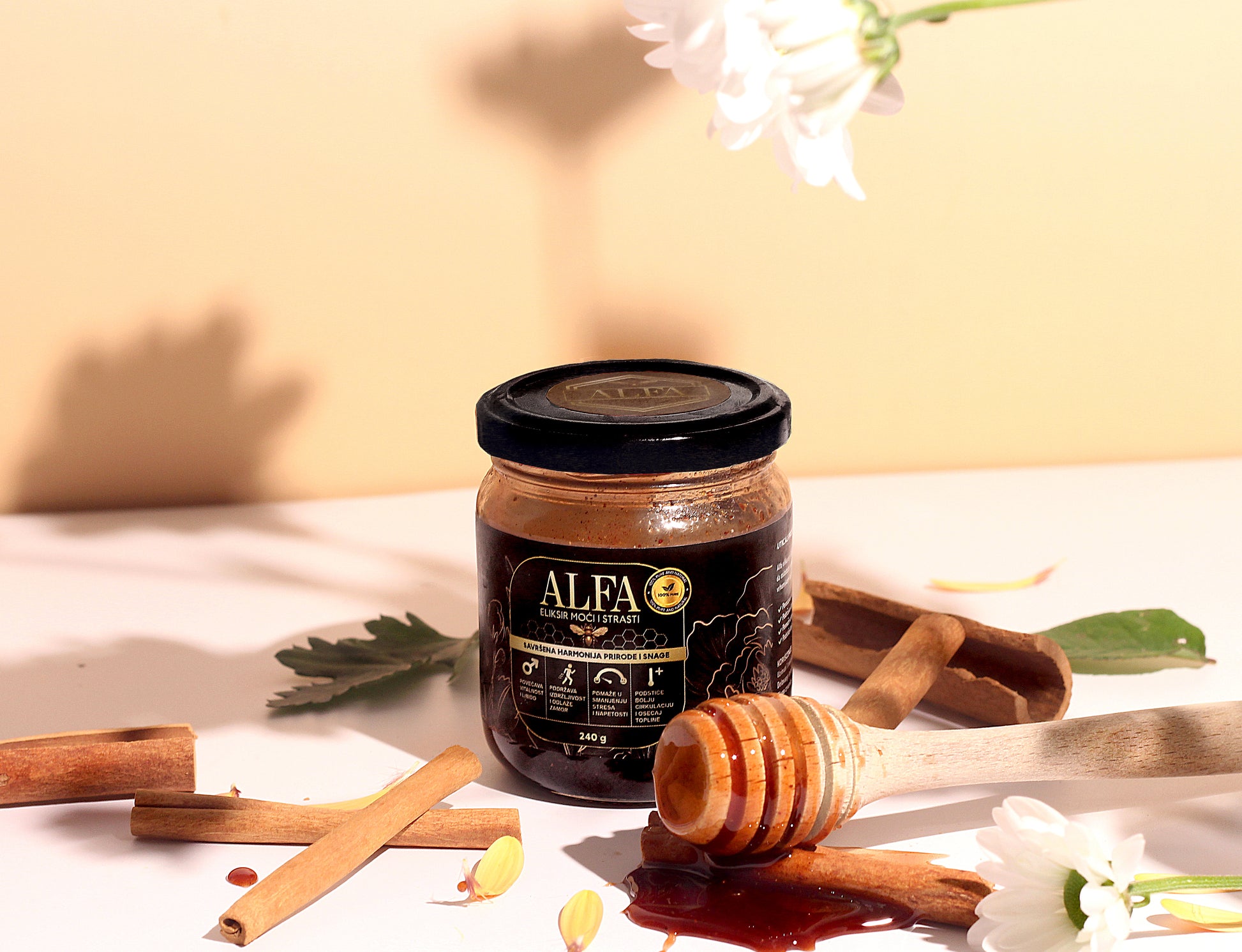Alfa Med je pažljivo osmišljen eliksir napravljen od kvalitetnog meda i tradicionalnih biljnih sastojaka koji se stoljećima koriste za podršku vitalnosti, energije i intimne snage. Svaka teglica nosi kombinaciju prirodnih elemenata koji djeluju sinergijski kako bi tijelu pružili toplinu, pojačanu želju i osjećaj sigurnosti u vlastitu energiju.